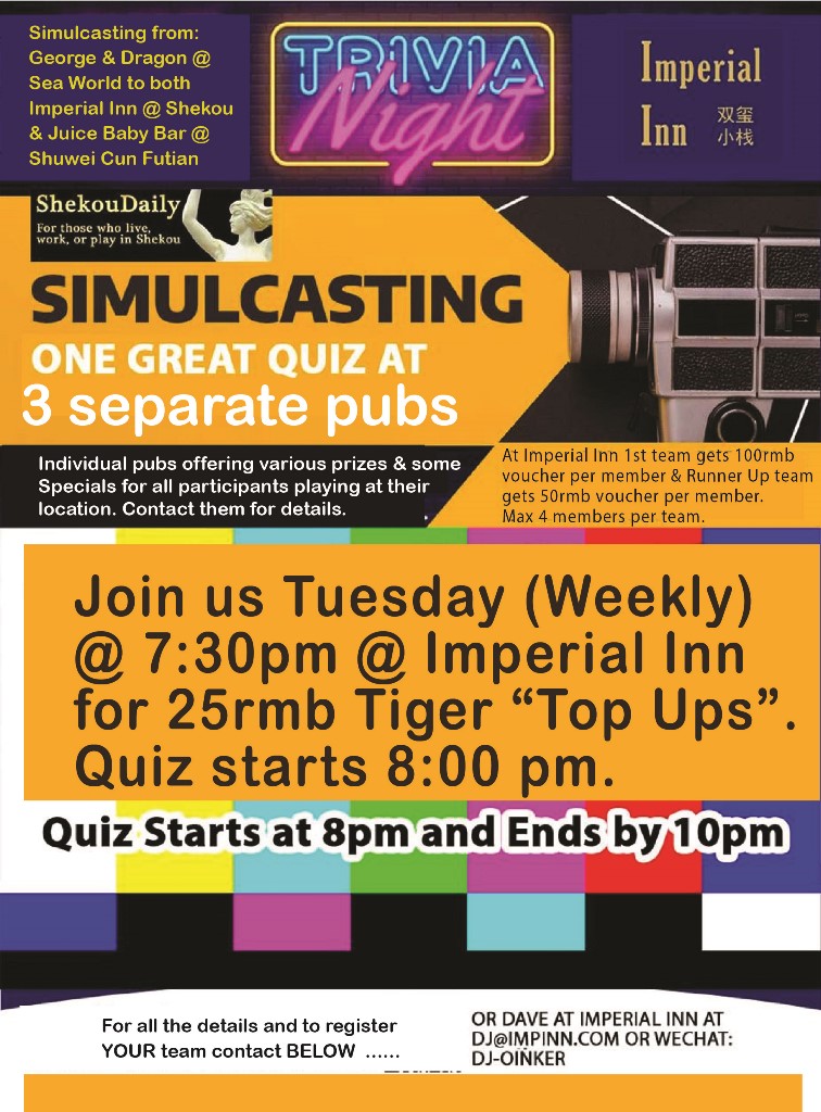 No Entry Fee and Quiz concludes by 10:00pm. Book HERE & NOW